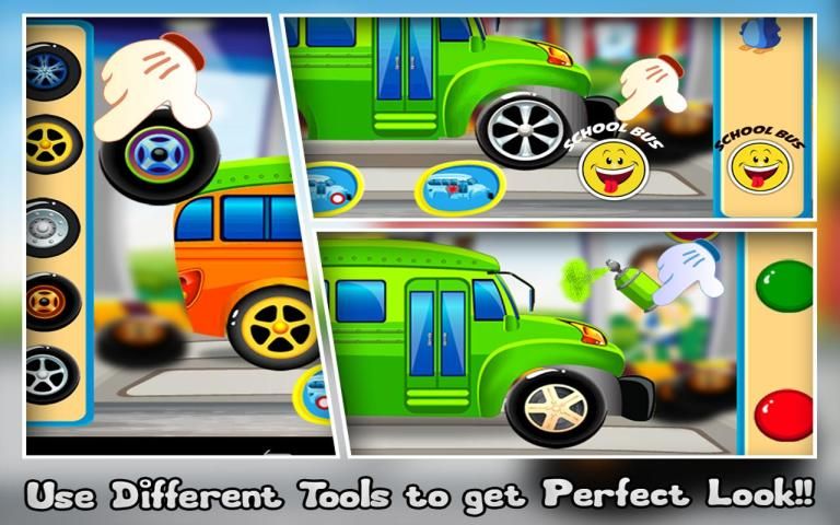 Screw it! Paint it! Customized shape! Repair it! Drive it! Speed up your engines; Give some shine, a new look and feel with sparkles over the colorful body paints shine with paintbrush of your color choice. The mechanic bus automobiles School bus engine interior & tweaks tact’s are useful here. Choose your best performance hot pursuit bus parts to assemble and give it some nice and attractive interior looks different, shiny and graceful.