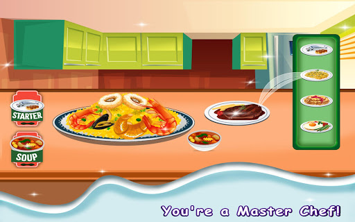 Cooking recipe method is used in Spanish cuisine. Flow of this game is quite interesting, so interactive that you will be addicted to it. If you have cooking craze then you loved to play this game. Seafood paella cooking game help to learn Spanish food recipe like Paella to Little kids Masterchef. Take your cooking skills to new level and become top chef! Enjoy incredible restaurant seafood cooking game.