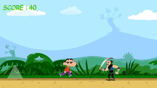 The Jungle Adventures of shin-chan is one of coolest ( run and jump ) games around in the jungle adventures . This game is about shin-chan in the jungle adventures , who is trying to rescue his friend tiger after he was kidnapped by the vicious bee . You have to run with shin-chan through a risky jungle adventures full of monsters and bee . You can collect coins to power up shin-chan in order to shoot monsters from distance in the jungle adventures . There are 4 different levels in this game which you have to pass with the shin-chan if you want to help his friend. If you would like to have an adventure with the shin-chan in the world of the jungle adventure then this is surely the game you are looking for , you must be ready for the jungle adventures as it is very risky and the shin-chan is in need for your help in order to rescue his friend tiger . This game is very simple all you have to do , is to jump and run through the jungle adventure all the way to the finish castle in each level . shin-chan Jungle Adventures provides multiple jungle adventures. You have to avoid obstacles by jumping and running over them with shin-chan .