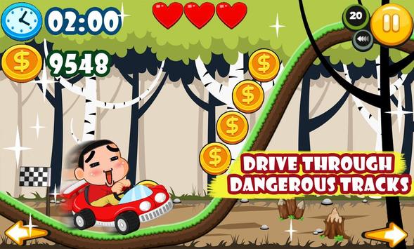 Climb hills and face the challenges of unique uphill & downhill, Upgrade your Chan kid skills then help your little kids is a racing game where you wear your gear and helmet then you need to avoid so many different obstacles along your journey in a fun ride in the jungle magic forest, overcome funny dangers while collecting as many gems as you can to get high score. Let your little baby shin run through the forest and jungle to discover new power ups to jump from hill to hill and compete against the biggest uphill's and mountains you find in the run road of hours with fun and excitement.