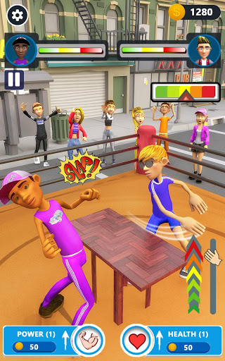 Master Slap Contest Champion game is simple and easy, yet very exciting. The smackfest slapping contest has various elimination rounds, where there are two players and each strives to knock down their opponent. Slap shots fight starts with a handshake to give friendly gesture and show sportsmanship. Slap and facepunch each other fiercely on the face with open palm, until the other player surrenders. No one can beat you, push them all hand to slam rivals on the cheek with fearsome slap and smack them down on floor.