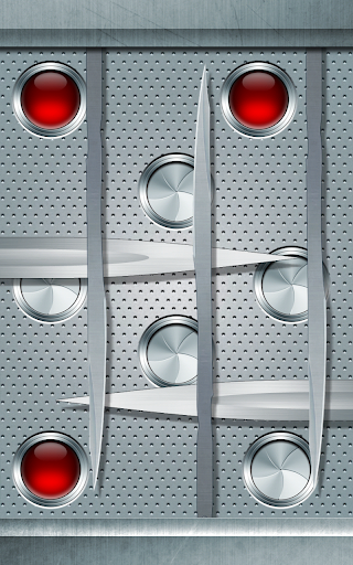 Slice HD is a sinister puzzle game for your Android device. The goal of the game is to clear layers of very sharp blades to push the red button. Push all the buttons in order and you win. While trying to open the puzzle you must not touch the sharp edges of the blades or you will get SLICED. When this happens, blood spills from your finger(s) onto the glass and the puzzle will reset. The blades only move in specific patterns that you must intuit by touch. Often, you must use multiple fingers to hold blades open while you manipulate other blades with other fingers. This game is really about trying to figure out the hidden behaviours of the blades and moving the blades out of the way, carefully.
