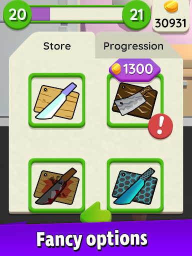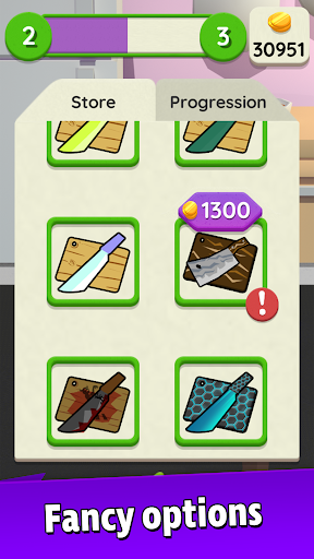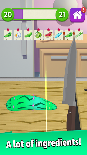 Be a great chef, slicing a wide variety of ingredients and collecting fun-themed knifes.