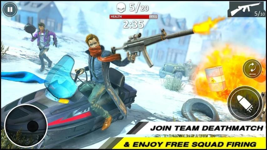 Squad free fire Battle - Legend Battlegrounds has the Fee Fight battlegrounds that make it the best Battle Royale shooting game. Your Squad free fire Battle has to fight against the militant hunters and it is the army battle where you have to win at any case, otherwise you will lost everything. You have survive the horrific wars, now as a survivor you will fight, killing all the intruders that come in your way by using powerful weapons. Face tanks, helicopters and all sort of dangers but prove yourself as real American soldier who can bring fire storm with sniper. For fierce fighting game provides you with many free weapons that are latest and high tech.