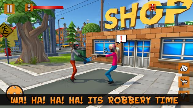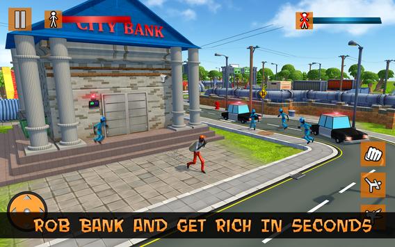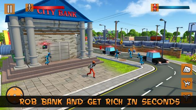 Some tricky Moves will help your Stick Fighter escape from the crime scene in this new robbery gangster city game. Drive in cartoonish city with stick fighter gangster & plan the perfect robbery. Equip best weapons for even more firepower in this jet pack game. Take over the city; pick up weapons and cash Along the road to increase your destruction radius and Chances of Survival!