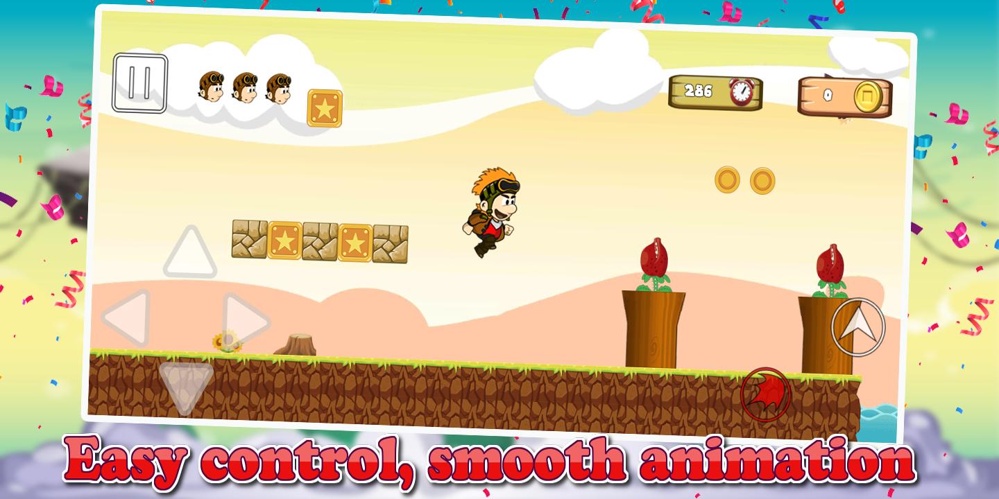 Amazing classic side scroller game Super Boy Run : Jungle Adventure. This game brings back memories of old school arcade games with many adventures Jungle. World of this game contains well-designed levels, various enemies, boss, Simple gameplay, nice graphics, and soothing music and sounds.