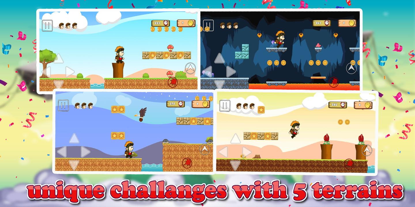 Super Boy eats coins together and enjoys life and suddenly Monster appeared from the deep jungle of nowhere. This evil captured monster escaped into the deep jungle Adventure Boy.