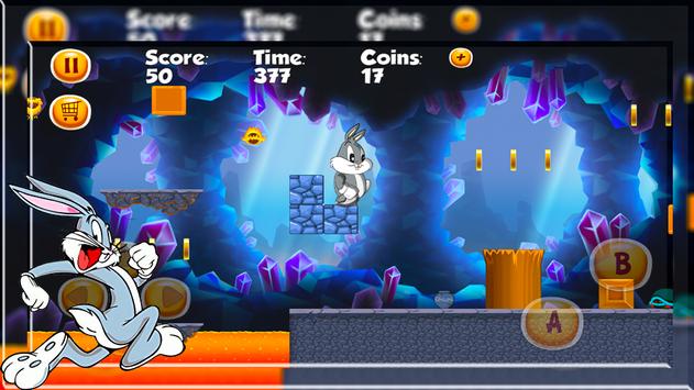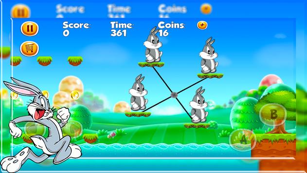 You will have to run through a risky jungle adventures with bunny in order to save his friend looney after he was kidnapped. Upload and start a wild jungle adventures to rescue bunny 's friend. Throug the Jungle Adventures you will face plenty of monsters you have to kill with bunny , in order to keep bunny alive. Tunes is jailed in the black castle , where the big vicious looney monsters lives. Thourgh the jungle adventures you can collect power ups in order to make buggs bunny the rabbit stronger. Tunes When you power up bugs tunes the maximum level you can start shooting explosive bombs. There are 2 ways to kill monsters ,