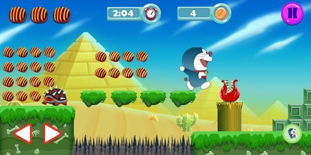 Collect as many dorayaki as possible in jungle adventures, ice world, volcanoes, and desert worlds. Keep the doramon on the roads do not fall to the bottom of the sea or sharp spines. Happy playing in your leisurely time.