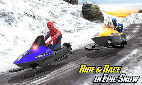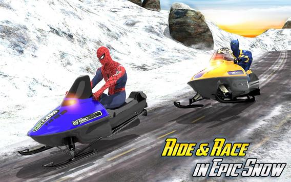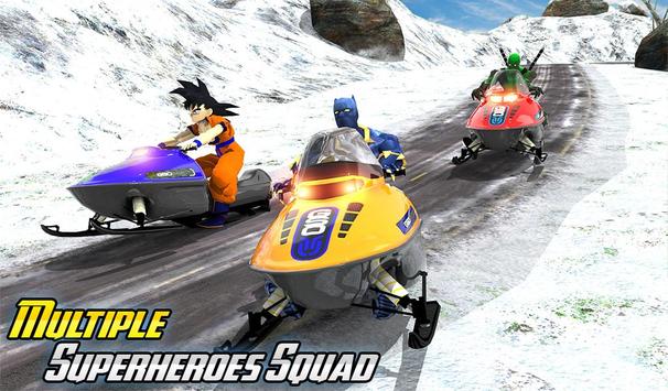 on frozen mountains as it is the best super motor sledge sports with the amazing superheroes, such as super saiyan goku, incredible bulk, flying master spider, bat hero and black hero panther racing against each other. So start the snow sports adventure now with 3D hill climb mountain racing driving sledge crazily on snow tracks.
