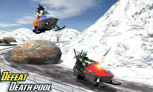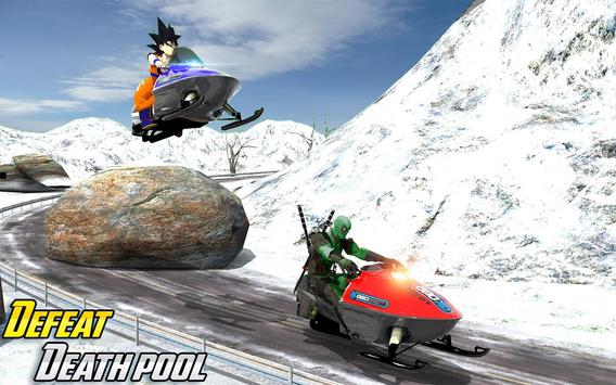 Brace yourself as the great saiyan warrior Goku hero to smash down opponents in adventurous classic snow mobile racing in cold storm. You will get a chance to learn how to drive sled on off road snowy terrains with thrilling stunt bike tricks. When the race starts, try to avoid all the hurdles and obstacles on your path like pitfalls, stones, and blockages. Smoothly and intelligently control motocross sled to abstain from hitting & crashing with other motocross rider. So buckle up now for snowcross stunt ride now & reach the checkpoints destination before other superheroes to win the race.