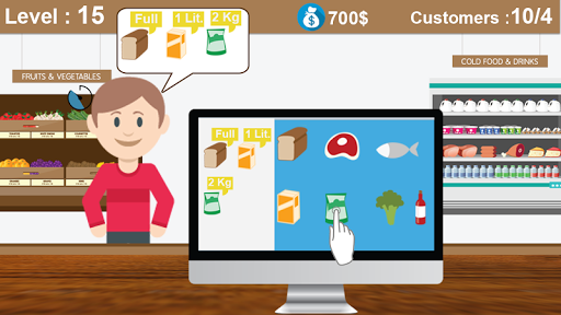 The design of game play is like this its a supermarket shopping themed, with cash counter in from on which commercial POS Machine is there, then there is room for customers, grocery items are shown above their head, its a perfect convince store for shopping and food item to grocery. And You gaol is to earn money.