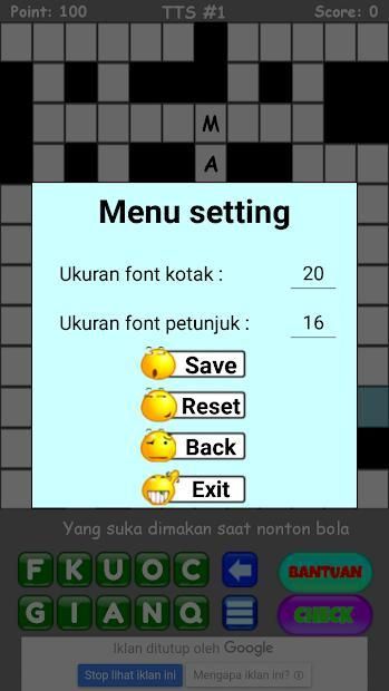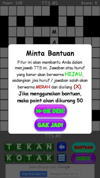 Game ini adalah permainan yang di buat untuk melatih cara berpikir kita dengan di beri beberapa klu kalimat dan kita harus menjawab ke kotak yang sudah di sediakan