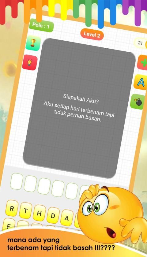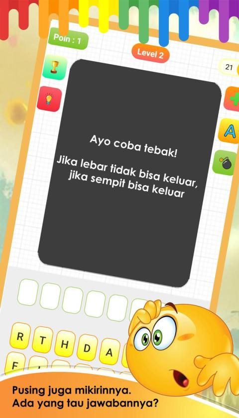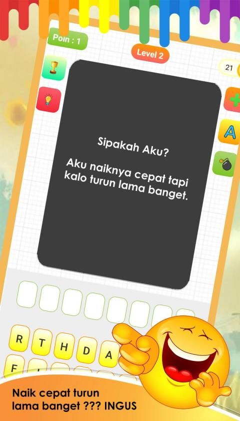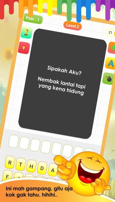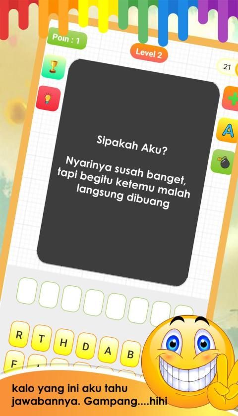 Game Teka teki ini adalah permaian yang sangat lucu dan menghibur serta dapat mengasah kecerdasan otak. Kamu gak bakalan bosan main game teka teki ini.