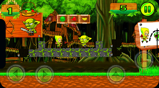The jungle or island has been invaded by monsters with excellent skills. The inhabitants of this jungle_island have left their woods and fled. With the help of Hooded Robin, start your epic adventure and go straight to victory. This jungle is frightening because the inhabitants of this forest are elves, cannibals, thugs and assassins, flying dinosaurs to the fireball , so our hero has to combate all these monsters by dressing his hood and shooting with their bow to kill them, adding that this hooded robin eats a specific amount of fruits like bananas, apples, pineapples, watermelons and strawberries and earn treasure at the end of each level, beware of the lava it burns, this hooded robin can do extra parkours in the air, so you have to use these swings to kill the maximum of monsters, this hooded robin can run and jump and kill with rainbow all the enemies available in the jungle or the forest, all that to help the beautiful princess at the end of the game, forgetting that this super robin can jump up to 3 meters length by clicking 2 Once on the jump key, the elves of this world are the most dangerous enemies so you have to be careful to pass the different levels of this game.
