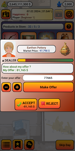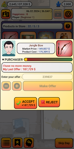 Time of Sales LITE, is a very successful game in the categories of shopping game, pawn shop game, second-hand store management game, store simulation game and tycoon game on mobile phones and tablets.