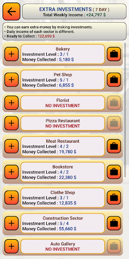 Increase game difficulty by unlocking natural disasters, theft attempts, raise requests.