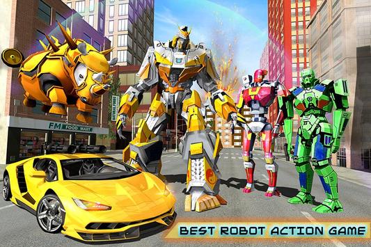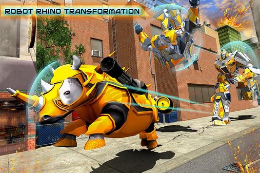 Engaging game play with rhino fight against super hero bots from robot transform games