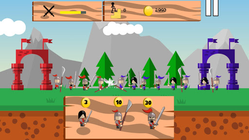 You are the leader of blue army of warriors. Your goal is to conquer enemy palace. Your warriors include general, spear and sword. In the battle field, each warrior has different skills. The more skilful warrior cost more to train. Collect the gold coins. Use the coins to train the warriors and send them to the battle field.