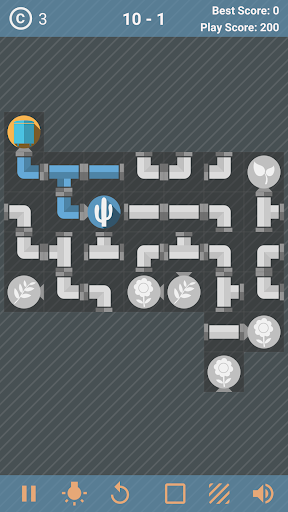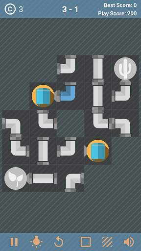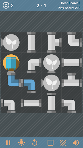 Rotate pipes, water source, and plants tiles, and supply water to all pipes and plant symbols. When water is supplied, the pipe and plant icons will change to 'blue' color.