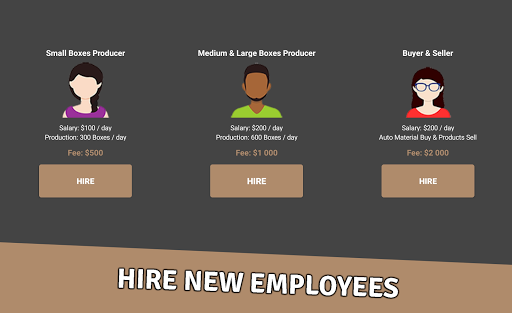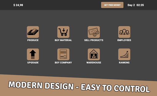 This business game contains an interesting gameplay, the possibility of hiring new employees, the possibility of improving machines in the company, the possibility of buying other companies.