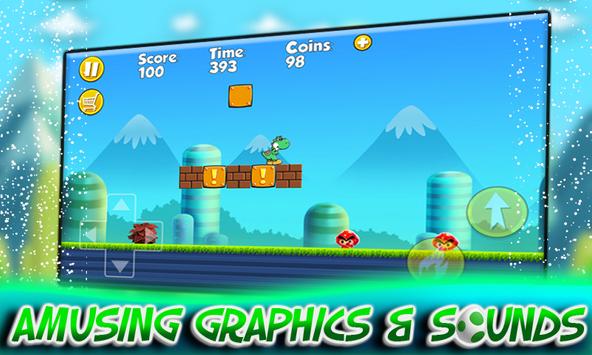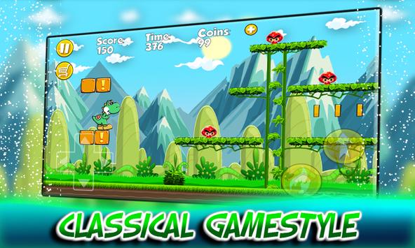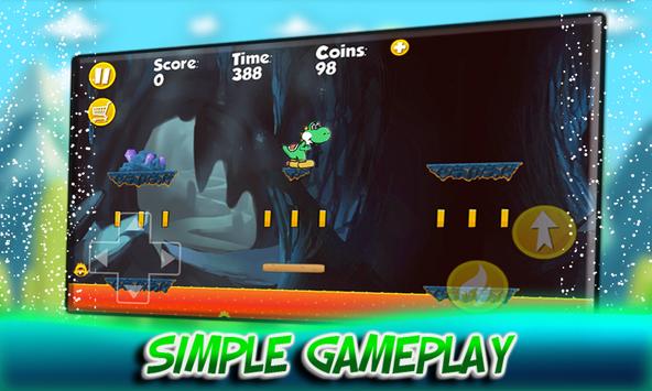 Yoshi in the Jungle Adventures is a free running and jumping game about Yoshi the cute Crocodile who is trying to reach his dear friend in the black castle. The super Crocodile is trying to reunion with his friend Super Boy so help give him a hand to walk through the jungle adventures. The jungle Adventures is full of wild monsters and vicious bosses, through the jungle adventure you can collect power ups to turn Yoshi to the bleu version and you can start shooting explosive fire bombs to kill monsters easily. Collect as many coincs as you can, and smash bricks to get the best score. You have to keep an eye because you have only limited time to pass each level, if you exceed the time given you will be dead. You will also be dead if you touch monsters, the best way to kill monsters is by explosive fire bombs, otherwise you can stump over them. The game is well designed, with the best high quality graphics and amusing sounds. Download right now and enjoy the thirrling adventure with your preferable character Yoshi, climb up the high mountains and dangerous stairs, fight and kill evelish enemies and big bosses, be focus and dodge comming monsters and falling bricks, find hidden bonus, hiden ballons and hidden boxes, collect coins and diamonds, swim through dangerous seas, explore lot of challenging and addictive jungle worlds and lands and defeat all cruel enemies and bosses.