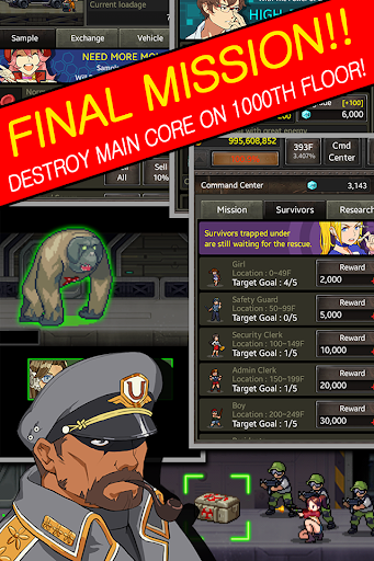 Destroy the zombies and rescue the survivors at the underground secret weapons laboratory infected with the virus. The ultimate goal is to go down to the 1000th floor and destroy the main core that is causing the infection.
