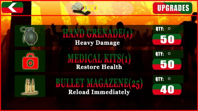 Note: - By completion of every level, you will be rewarded from some dollar by which you can buy bullets, hand grenades and health box from Store in the main menu