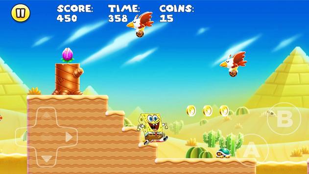 super spongebob adventure world is adventure and running game with side scrolling platform with sponge bob, patrick and squid ward spongbob as a player. You can select spongebob as player bob esponja.