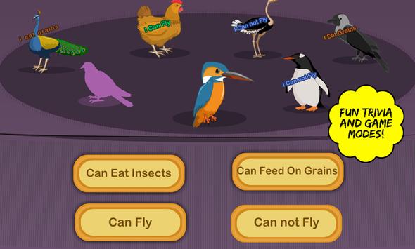 Birds Quiz is a birds game - an exciting package that tests a child's knowledge of birds. This is ideal for Class 3 kids who just got introduced to sounds, features, food, habitats and other features of various birds. Kids will need to match bird sounds, identify birds based on features, food etc. Mapped to NCERT / CBSE Class 3. They can also play a word game that gives clues related to birds.