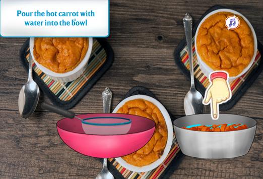 First of all scratch the carrots and then mix them with eggs, flower, baking soda, baking powder, etc. You will have to use a mixer in order to have a perfect composition. That means you will learn how to use some cooking tools too.