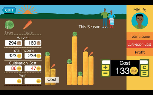 This game “Fun Fun Farming” is inspired by the Smallholder Horticulture Empowerment and Promotion (SHEP) approach promoted by Japan International Cooperation Agency (JICA) along with the people of African countries.
