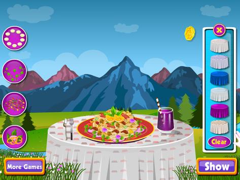 - After the food is ready, place a serving on your plate that you can decorate as you wish. The ingredients that you can use are: salad, cucumbers, tomatoes, radishes, cabbage and even you can choose a drink.