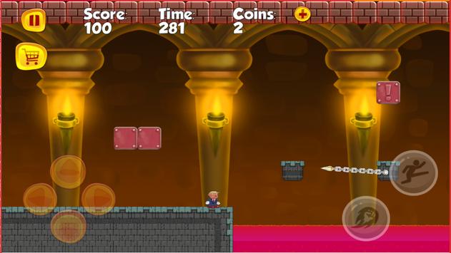In Trump Jungle Adventure Games Run World you will pass all levels and try to avoid enemies, traps, kill boss enemies and others.