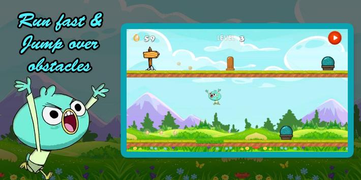 The new running harvey bird game is here, have fun and enjoy your time while helping harvey beaks in his adventure to collect eggs on the way and avoid obstacles. This is a fun free cartoon game where you have to overcome many obstacles in your way and jump like a ninja does in order to do that in the best way possible using the strength of your hero harvey beaks the bird. This is a fun children game to play it has easy levels and a nice character who runs nonstop in jungle and collects the eggs in his journey.