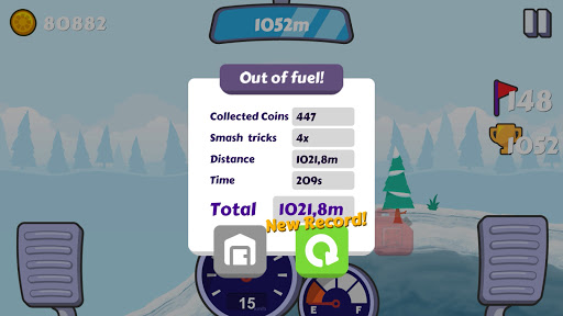 ⛳In the process of passing the game you will have to face driving in such areas as: Desert, Bumps, Arctic and Big Hills. Each terrain prepares for the player the most difficult obstacles and unpredictable humps and pits. To cope with this, you must have one of the most passable and largest cars, upgraded to the maximum. This is the only way you can go through all the levels of the game and drive the entire distance.