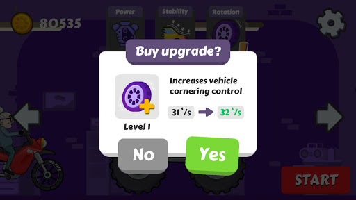 🚕Get in your car and master the hilly tracks. Your main task is to drive as far as possible and collect ⛽bonuses and cash coins on your way. You can spend them to buy improvements for your car. At the beginning of the game, only the first passenger car is available to you, in which you can overcome your first hundreds of meters of the road. The more money you earn, the faster you can upgrade your car and install new parts for the fuel system, engine, new tires and suspension. Once your car has been improved to the maximum, we advise you to buy a new car. Among the new cars will be: a van, a monster pickup truck, a truck and even an all-terrain vehicle.