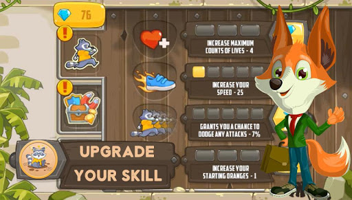 The jungle is so dangerous. Please help little fox running out into the jungle and collect more treasure and diamond.