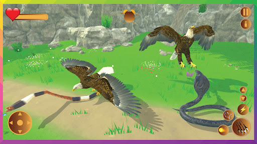 Eagle family sim and Golden Eagle Survival Simulator is based on life of wild eagle in forest with RPG eagle survival. In this wild simulator, you have to be a wild eagle or sea eagle with our eagle survival simulator. Find mate, start breeding and have beautiful baby eaglet. Hunt for birds and animals, live the life of the falcon. Play bird of prey quests or survival mode. It is up to you - beat other falcon or invite it to your bird of prey family. Meet other falcon, breed a new bird. Survival in the simulator is hard - so, maintain your energy - and explore the wild world as a bird of prey with our falcon survival simulator. Fight against other animals like fish, frog, snake, crab and many wilder animals in animal family sim games. Make your wild eagle become the strongest jungle eagle ever.