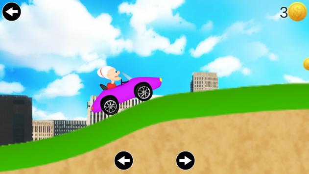 drive and jump with grandma car game. climbing mountains and collect coins.