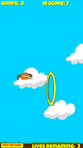 New game in JaderZone's tap to play series! Help Flying Bird-Man fly through as many hoops as you can. Sounds easy right? Just tap the screen to make the Bird-Man flap his homemade wings and try to soar through the hoops without touching them. See how many you can get through and go for your high score.