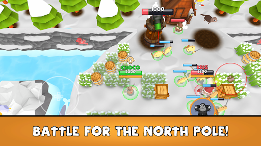 Battle for the North Pole: Fight for Team Cookies or Team Claus to destroy the enemy base. Your team spawns more cookie helpers or elves when you take down enemies!