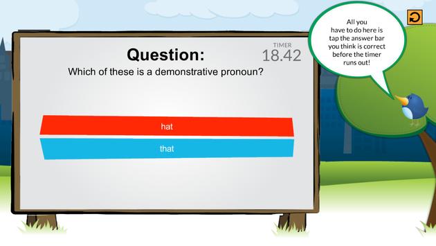 KSE for Kids has been designed to help children understand the complexities of English grammar in a fun and friendly environment. There are nine different components of English grammar featured in the game and over 200 questions.