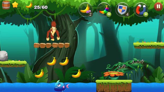To finish the platformer game Monkey Banana Jungle Run Adventures will have to jump and run over many obstacles, fight and shoot against chibi ninjas, cruel crocs, hedgehogs, skeletons, leps, cats and many other monsters and dragons.