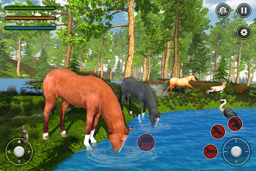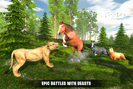Welcome to the Jungle Horse Family Simulator: Fun Horse Games and get ready to entertain yourself with this epic horse family simulator having different quests in Horse games. Play as a horse survival simulator and be the guardian of your horse family. There is a lion looking for his pray and just attack your family and you have to protect them from wild animals in this animal simulator 3d. In this simulator games start to raise your family in the loneliness of the jungle. You have to protect your babies and feed them as well as protect your mate from the wild animals in this Horse simulator. The best fun horse games in which you should be the best friend of your family by playing with your babies. The epic horse games for free in which you have to explore the jungle with your family and find different items like mushrooms, food items and water to feed yourself and your family as well in this horse games for kids. As you have a family and you have to be dominating yourself as a power of jungle in horse adventure games. So to do this build your own clan to become more powerful in horse simulator online. Use your power attacks to overcome and beat the wild tigers in horse simulator games, angry wolfs, lions and bears in horse simulator 3d. By doing this you will get your reward in wild horse family simulator. So collect the coins and use them to upgrade your horse her simulator. Unlike the other fighting games. Jungle Horse Family Simulator: Fun Horse Games is the best horse simulator free to play and their family.