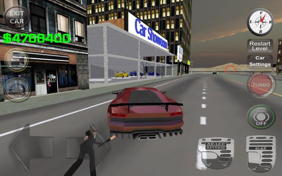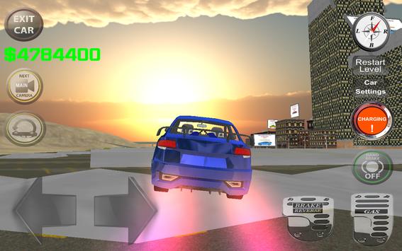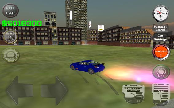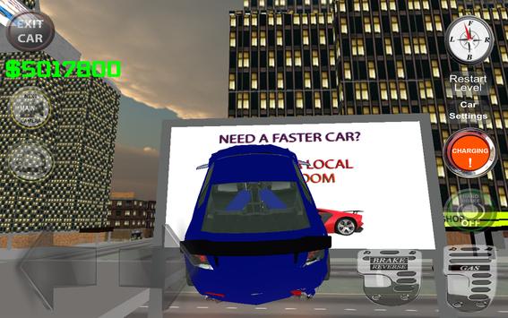 Progress through 10 levels by completing a stunt jump at the end of the level and smashing your car through a glass billboard to earn cash.