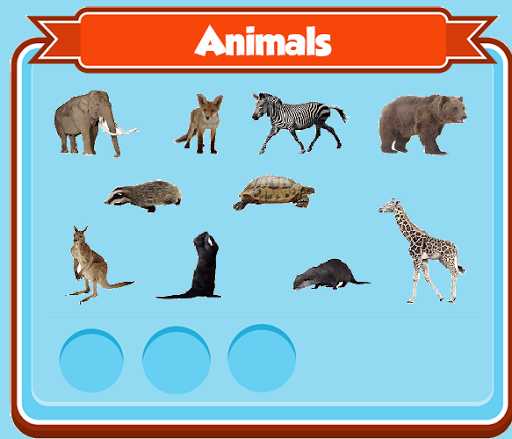 Interactive fun kids memory game with animals sounds and names as well as fruits, vegetables and things names.