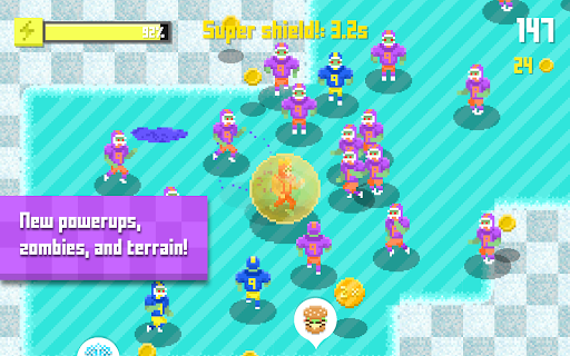 🏈3 zombie types, 6 unique powerups, and 4 environmental tiles