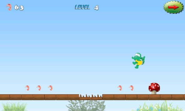 In the way the turtle keeps collecting grass. There are many obstacles and dangers you need to avoid by tapping on the screen. Use the spring pad for mega jump. When the turtle runs over the spring pad, it jumps higher than normal to reach up to the upper floor. He feels like flying and continues hunting for more lobsters.