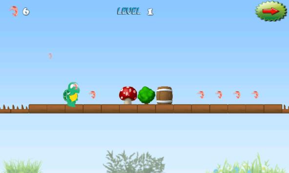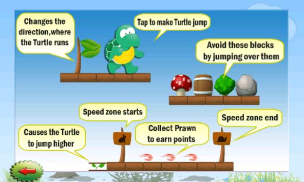 This turtle is very hungry. He needs food. So he came out in the beach with hunger dash. He knows where to find delicious lobsters. But turtle has to be aware about the dangers in the path. There are many obstacles in path of him and the delicious grass. He needs to jump over all the obstacles. For this he need to be a good jumper. He needs your help to hunt for the grass and to be a great jumper. So you come in charge. You need to guide the turtle to the lobster and whenever there is any obstacle in the path, tap on the screen to make the turtle jump.
